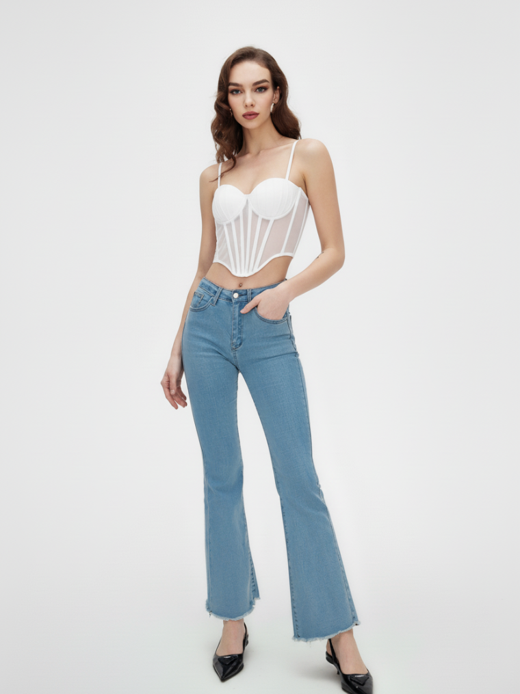 Perfect for pairing with high-waisted skirts, tailored pants, or layered under jackets, the Shell Voile Corset elevates both daytime chic and evening elegance. Sparkle subtly with every move and embra